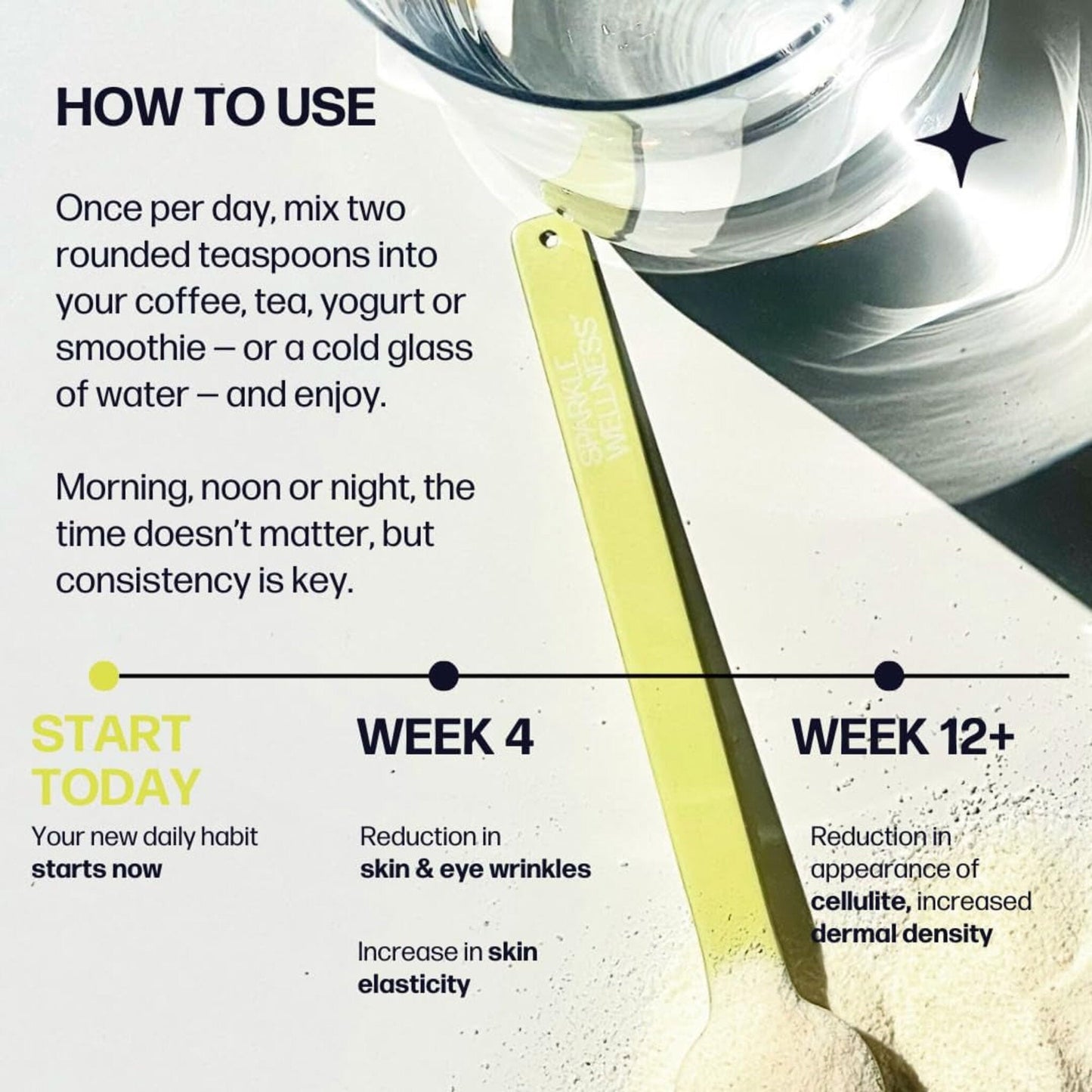 - CONTAINS CLINICALLY PROVEN VERISOL COLLAGEN — Each serving of Sparkle Wellness Skin Boost Plus contains 5,000 mg of VERISOL bioactive collagen peptides, 100 mg of vitamin C and 100 mg of hyaluronic acid